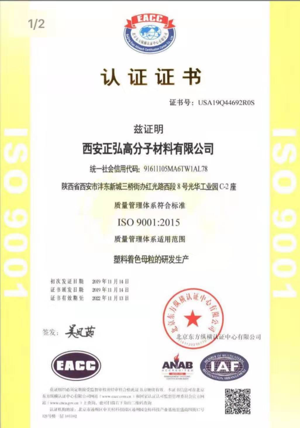 ISO9001:2015質量管理體系認證證書